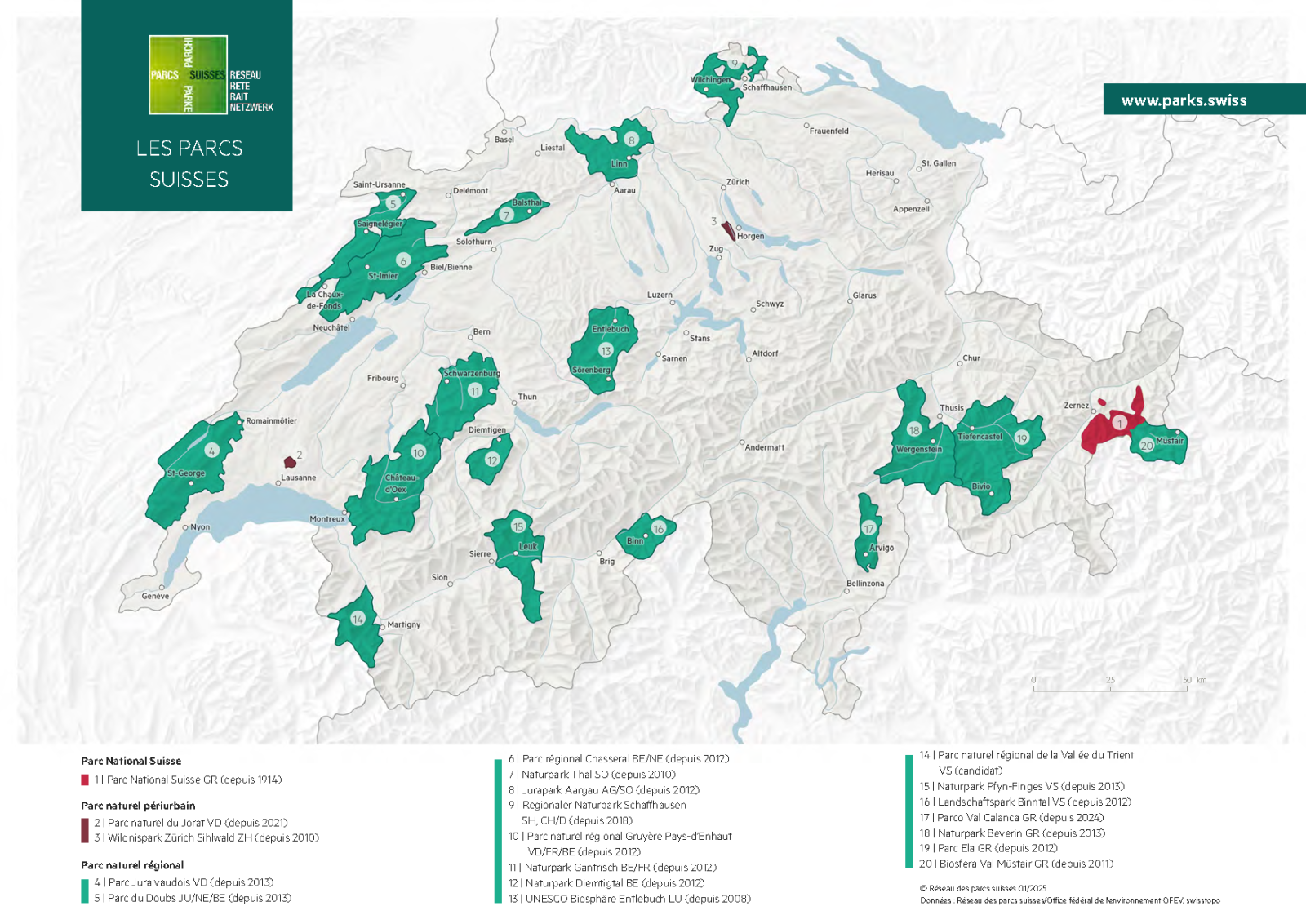 The Federal Office for the Environment (FOEN) is the body in charge of the parks of national importance.